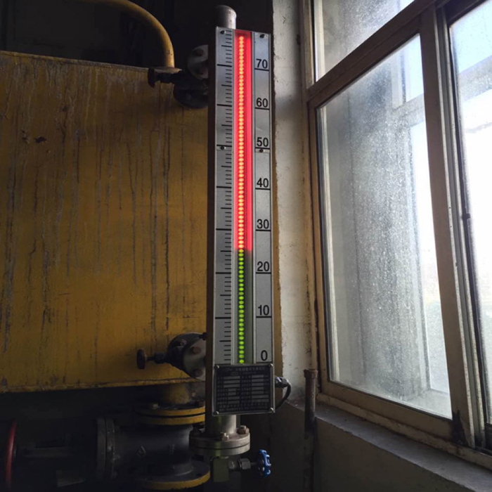 磁翻板浮子液位計當(dāng)液位上升時,翻柱由白色轉(zhuǎn)為紅色,當(dāng)液位下降時,翻柱由紅色轉(zhuǎn)為白色,指示器的紅、白界位處為容器內(nèi)介質(zhì)液位的實際高度。